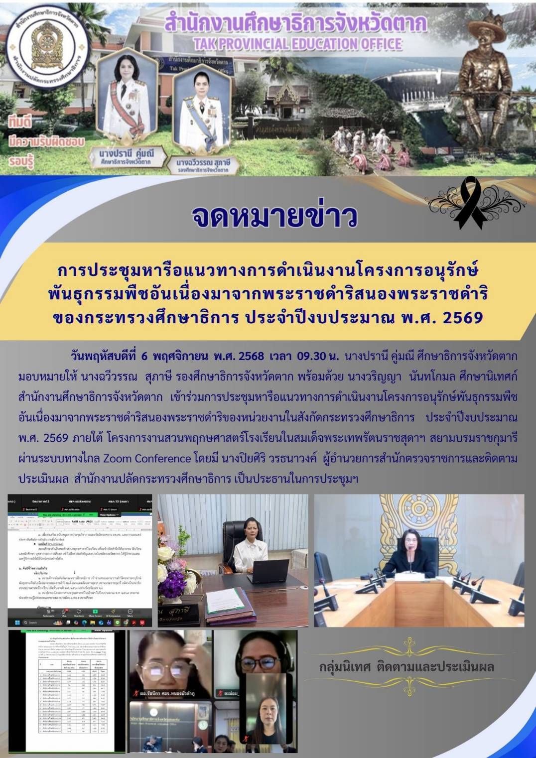 วันพฤหัสบดีที่ 6 พฤศจิกายน 2568 เวลา 09.00 น. ณ ห้องประชุมคำพุฒมหาวิทยาลัยเทคโนโลยีราชมงคลล้านนา ตาก