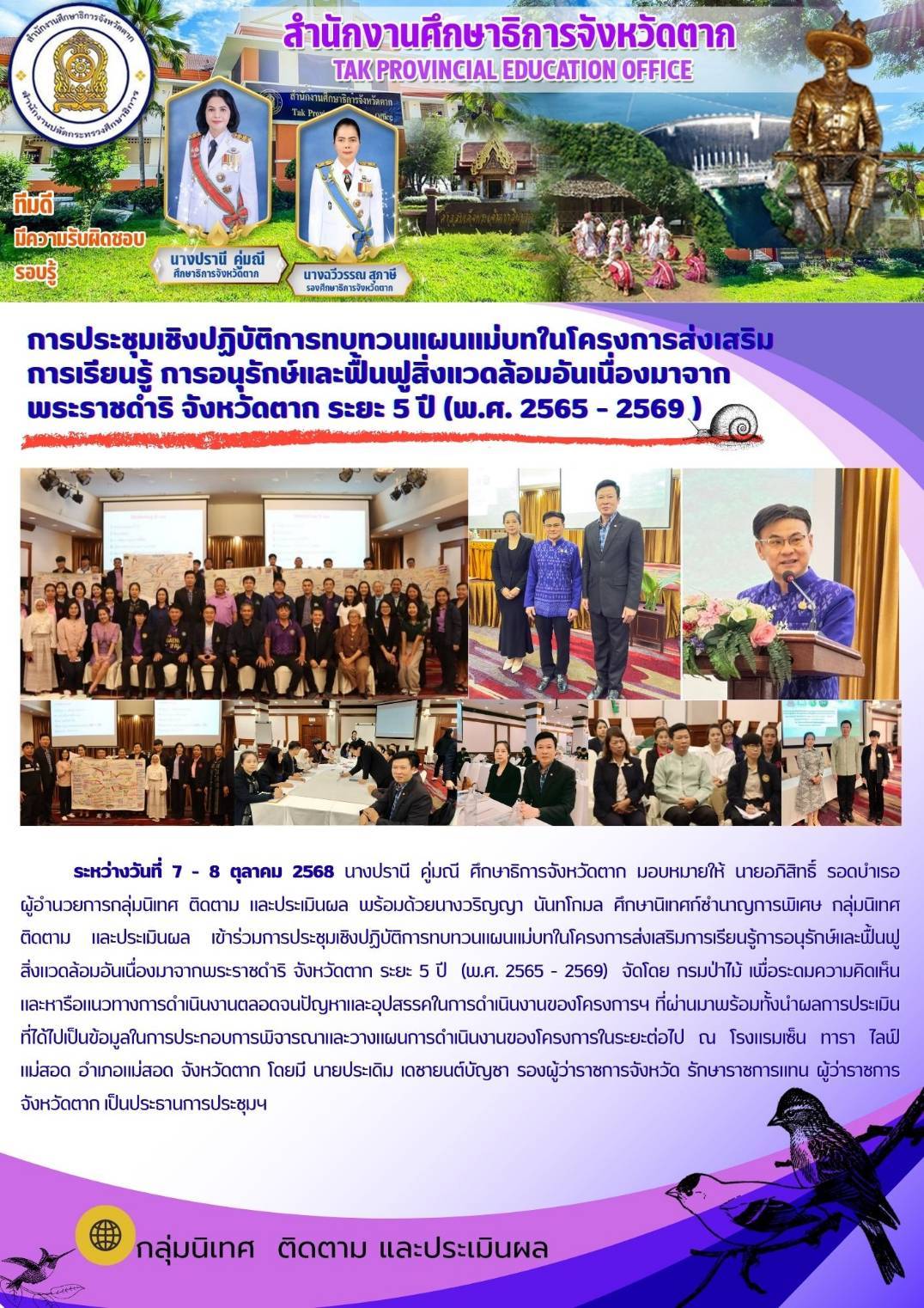 วันจันทร์ 18 สิงหาคม 2568 เวลา 13.00 น. ณ ห้องประชุมสักทอง สำนักงานศึกษาธิการจังหวัดตาก