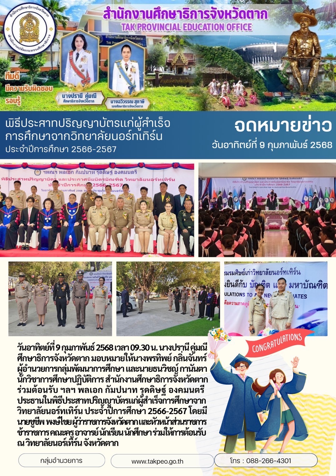 จดหมายข่าว วันที่ 9 กุมภาพันธ์ 2568 - สำนักงานศึกษาธิการจังหวัดตาก