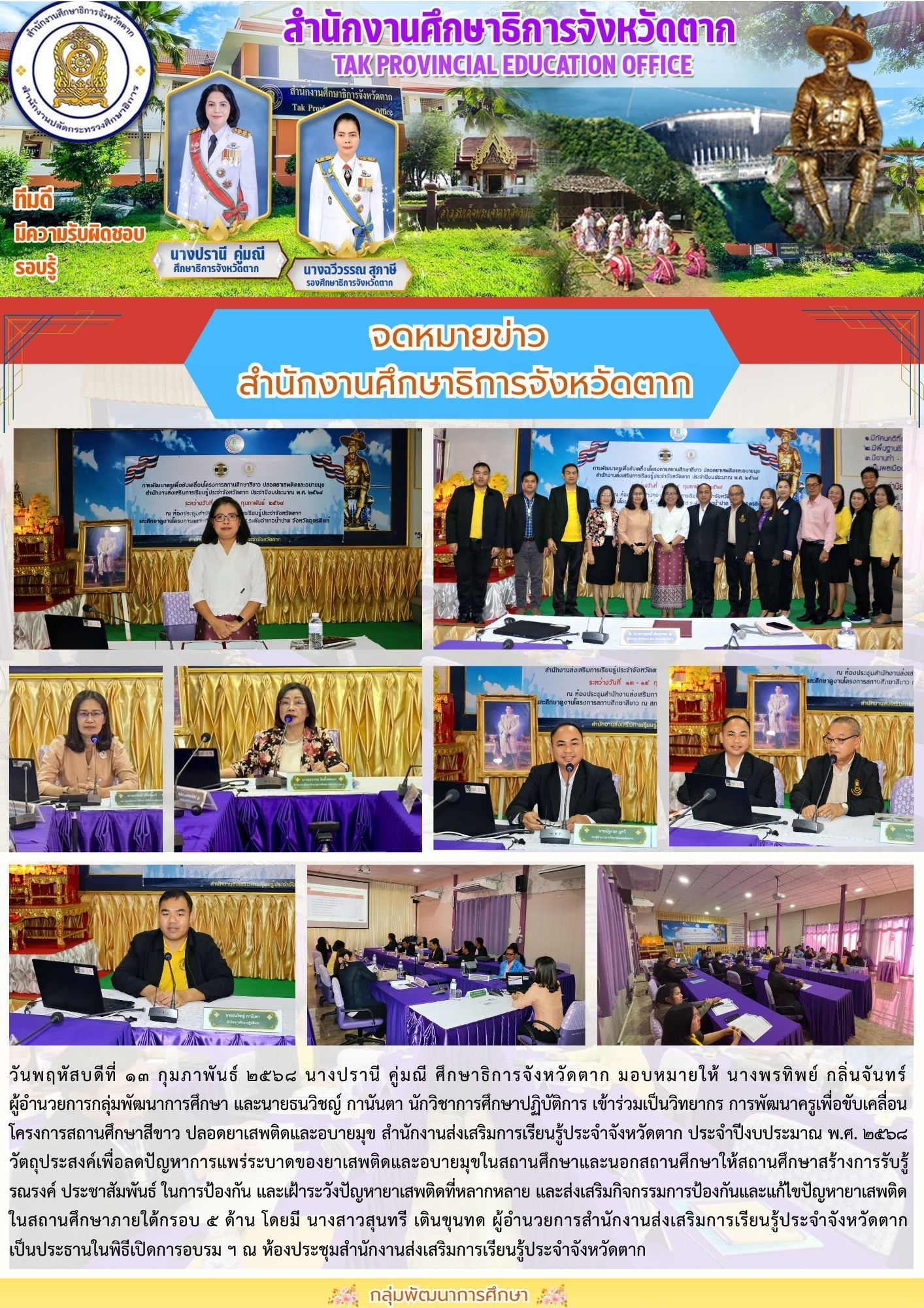 จดหมายข่าว วันที่ 13 กุมภาพันธ์ 2568 - สำนักงานศึกษาธิการจังหวัดตาก