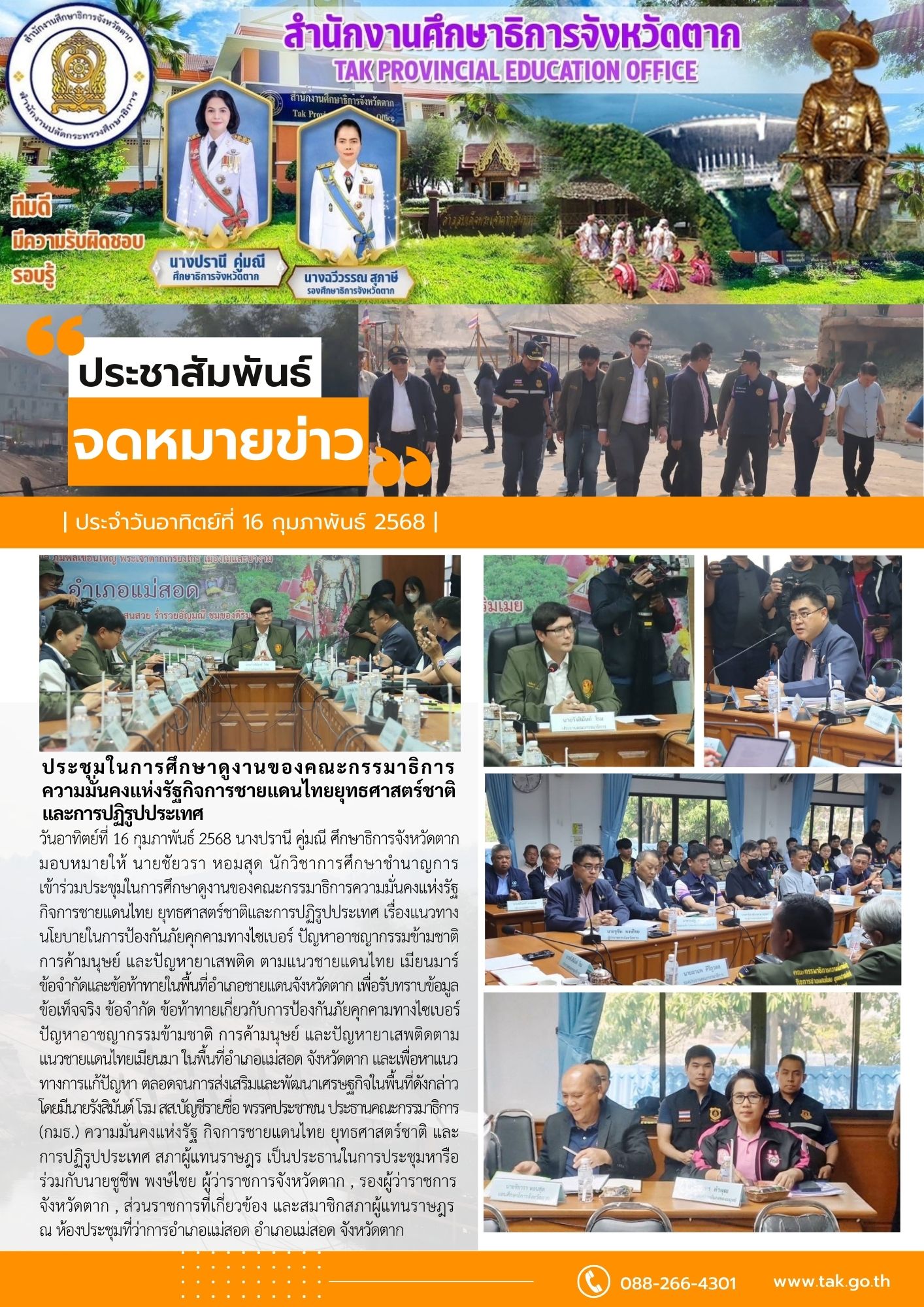 จดหมายข่าว วันที่ 16 กุมภาพันธ์ 2568 - สำนักงานศึกษาธิการจังหวัดตาก