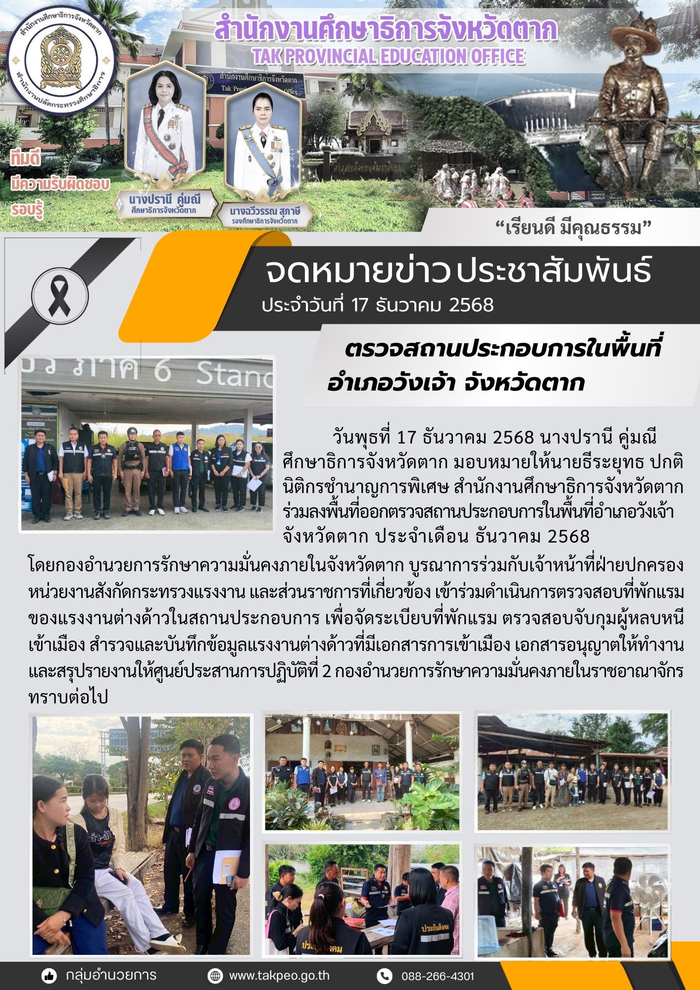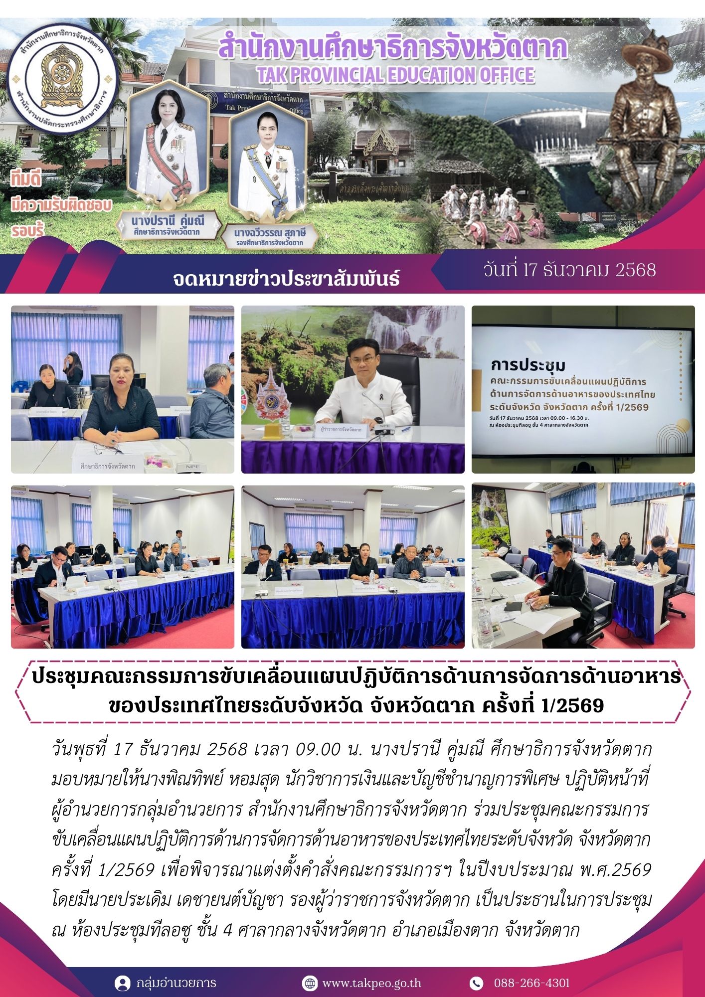 จดหมายข่าว วันที่ 12 ธันวาคม 2568 - สำนักงานศึกษาธิการจังหวัดตาก