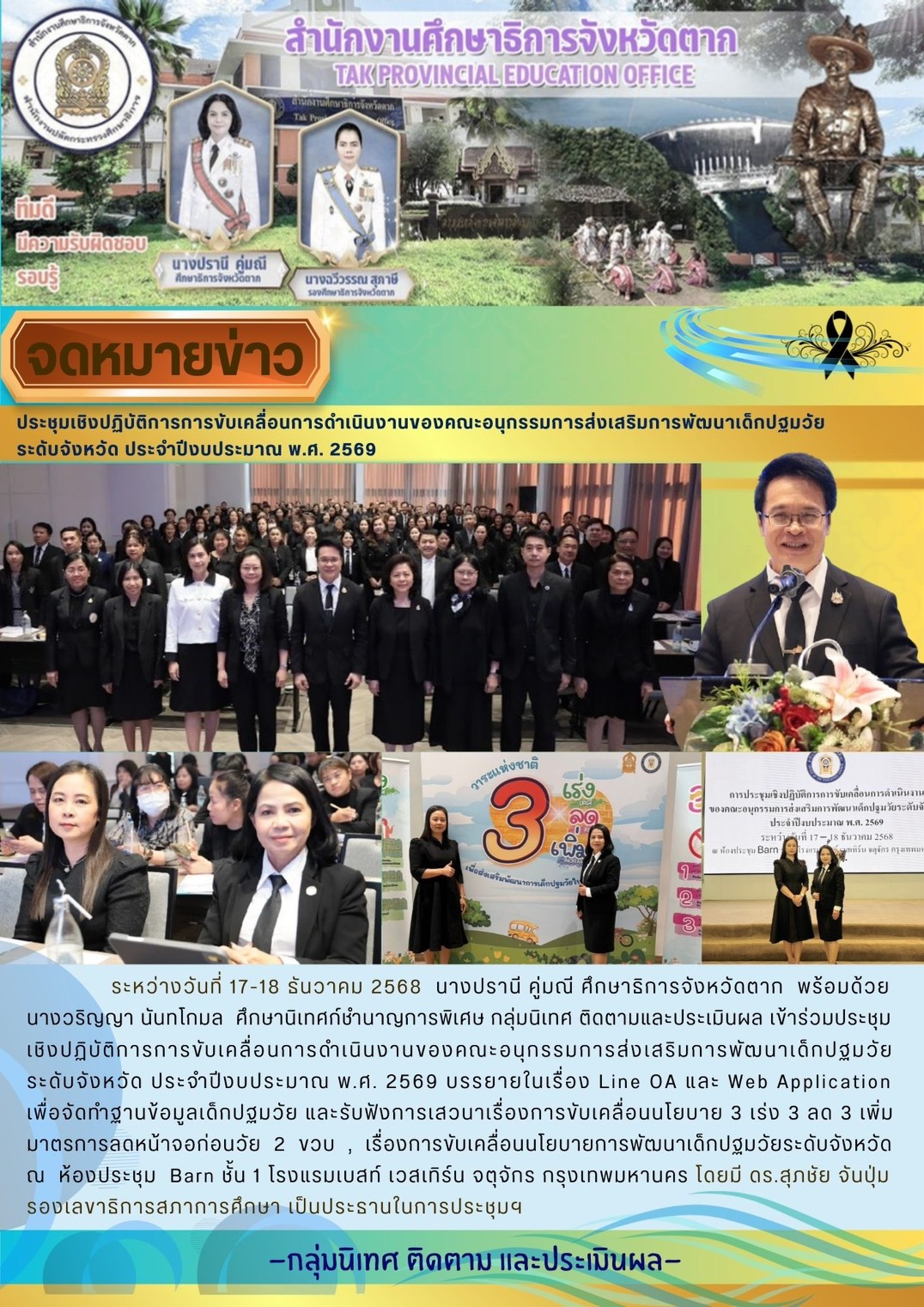 วันพฤหัสบดีที่ 20 พฤศจิกายน 2568 เวลา 09.00 น. ณ ห้องประชุมสักทองสำนักงานศึกษาธิการจังหวัดตาก
