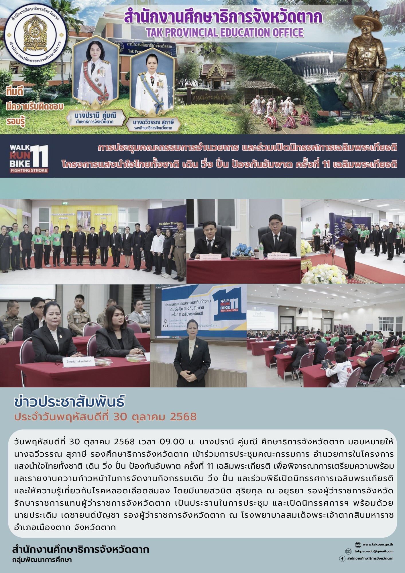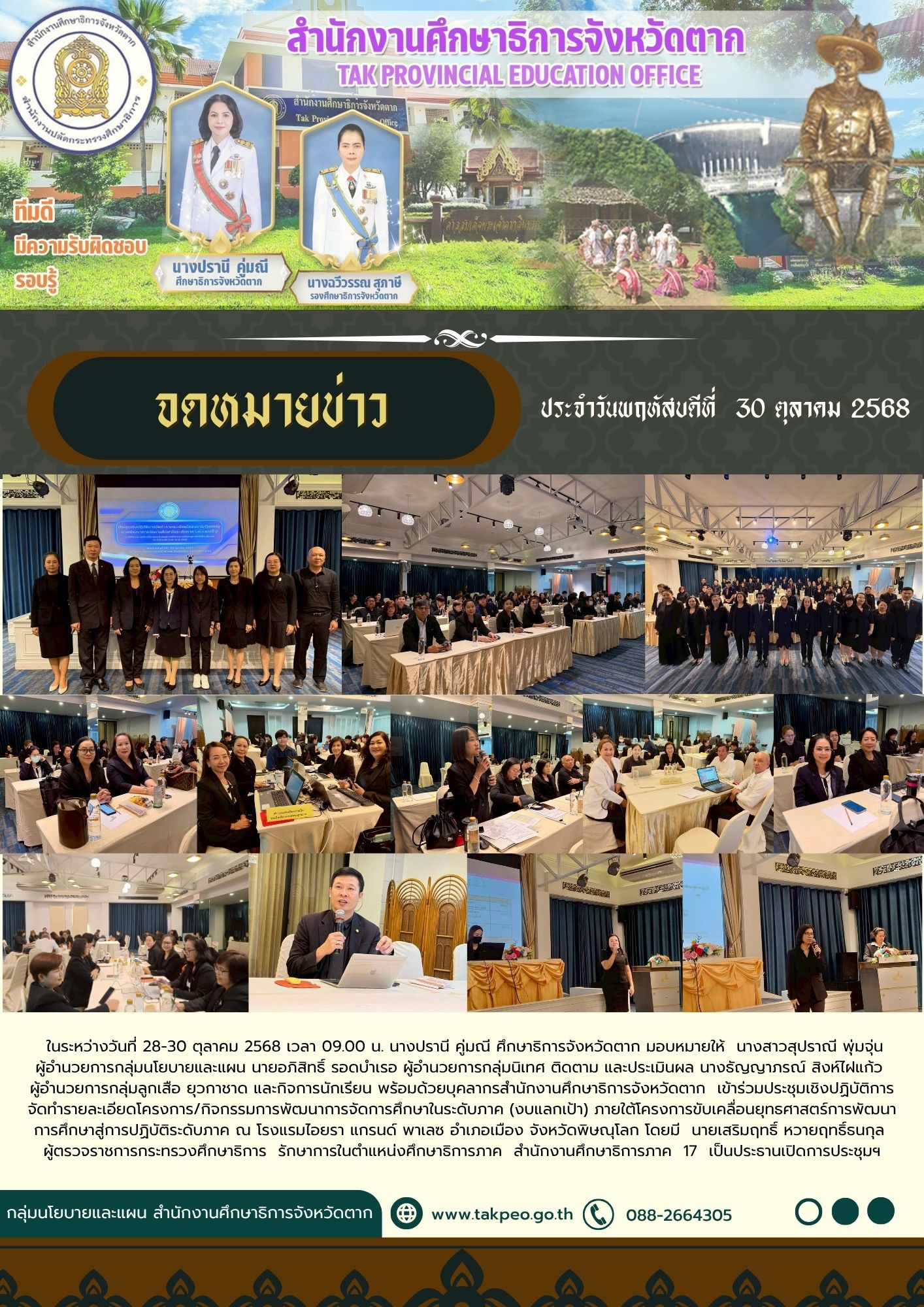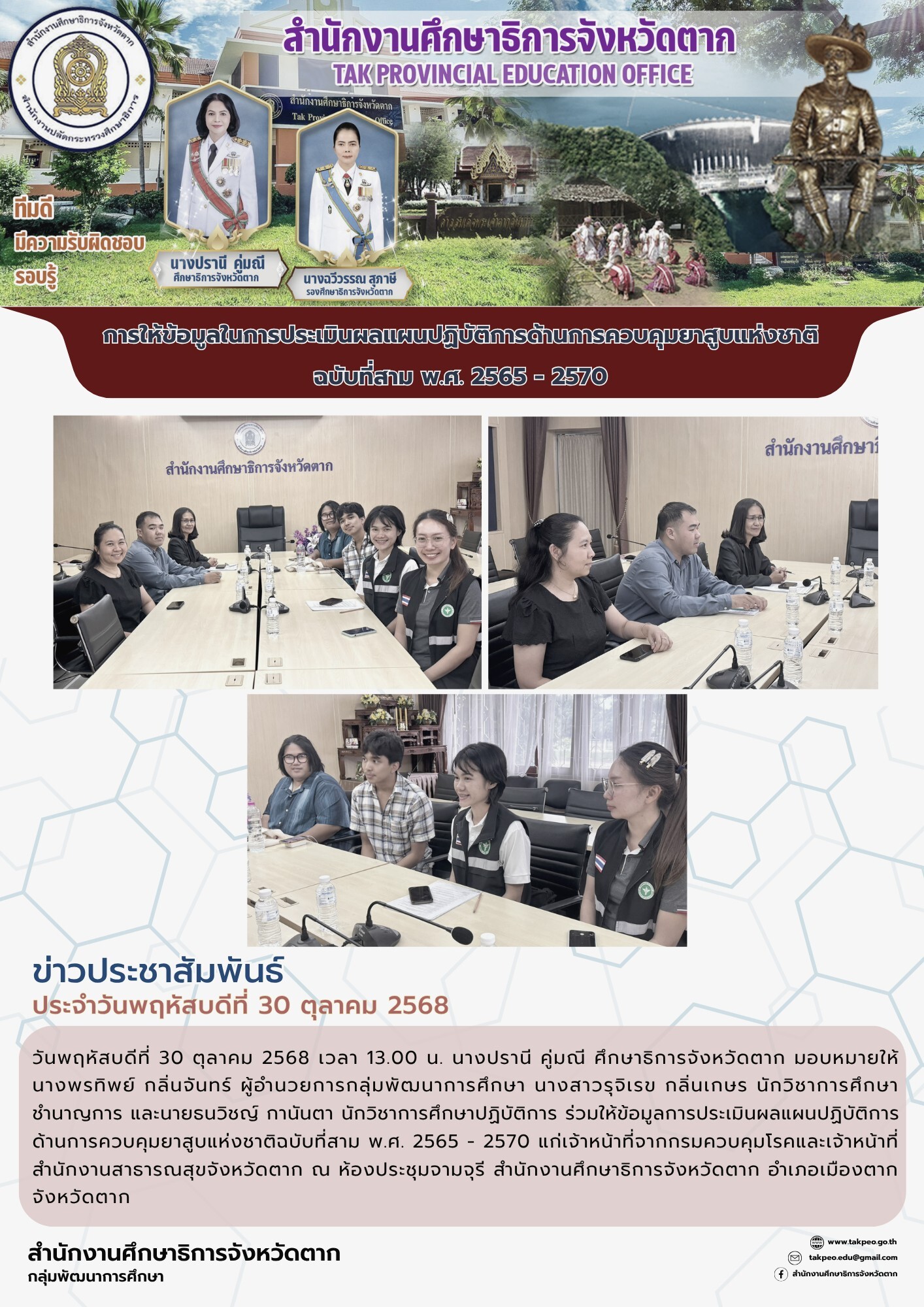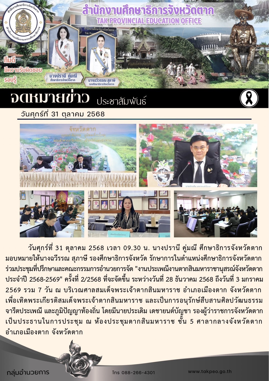 วันจันทร์ 18 สิงหาคม 2568 เวลา 13.00 น. ณ ห้องประชุมสักทอง สำนักงานศึกษาธิการจังหวัดตาก